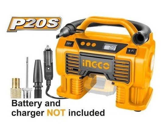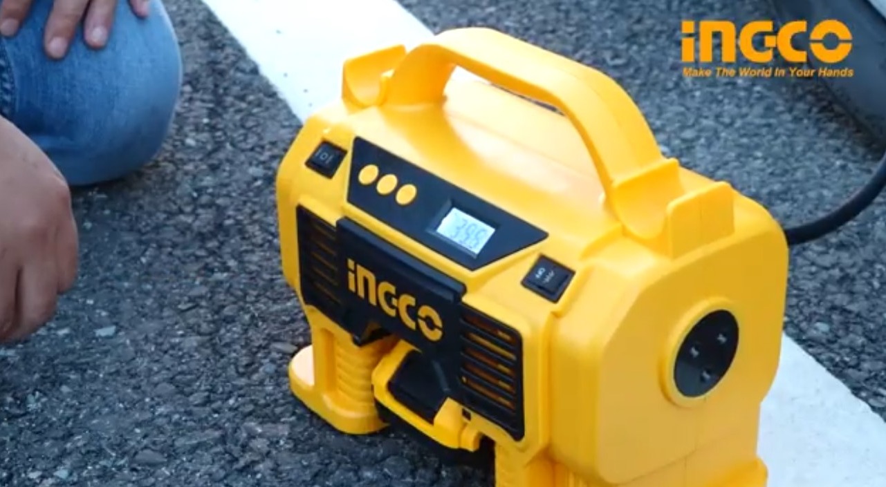 Аккумуляторный автомобильный компрессор INGCO CACLI20021 это компактное приспособление для быстрого накачивания велосипедных, мотоциклетных и автомобильных шин, а также изделий низкого давления - надувного матраса, лодки или плавательных кругов.