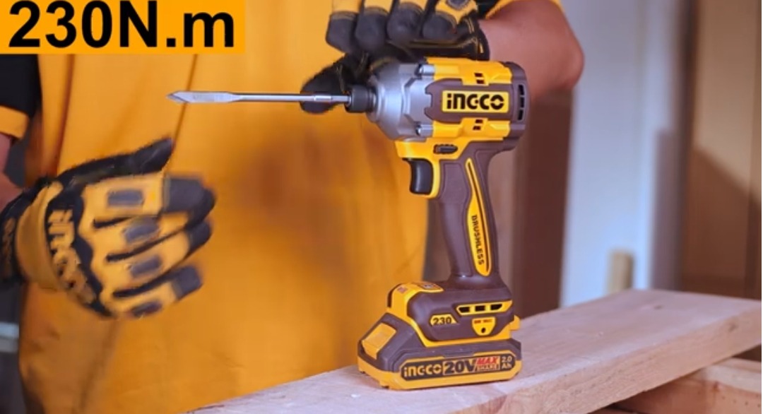 Аккумуляторный бесщеточный импульсный винтоверт INGCO CIRLI2023 INDUSTRIAL 20 В 230 Нм предназначен для завинчивания и отвинчивания шурупов и гаек.