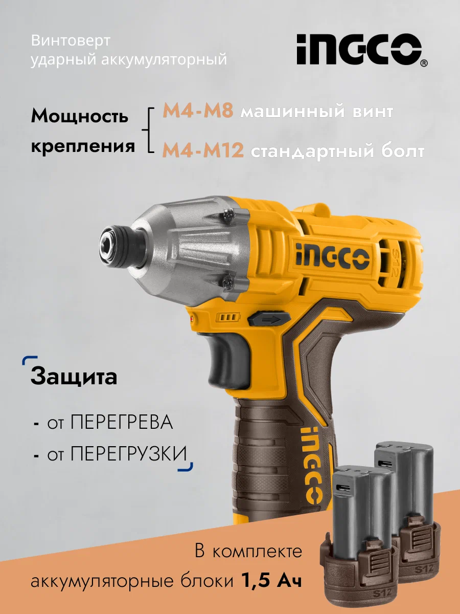 Аккумуляторный бесщеточный импульсный винтоверт INGCO CIRLI12015 предназначен для завинчивания и отвинчивания шурупов и гаек. Имеет бесщеточный двигатель, что обеспечивает увеличенный ресурс инструмент. Корпус выполнен из ударопрочного пластика с противоскользящей рукояткой. Инструмент оснащен светодиодной подсветкой рабочей зоны для работы в условиях недостаточного освещения. Схема защиты батареи уберегает от повреждений, высокой температуры или перегрузок.