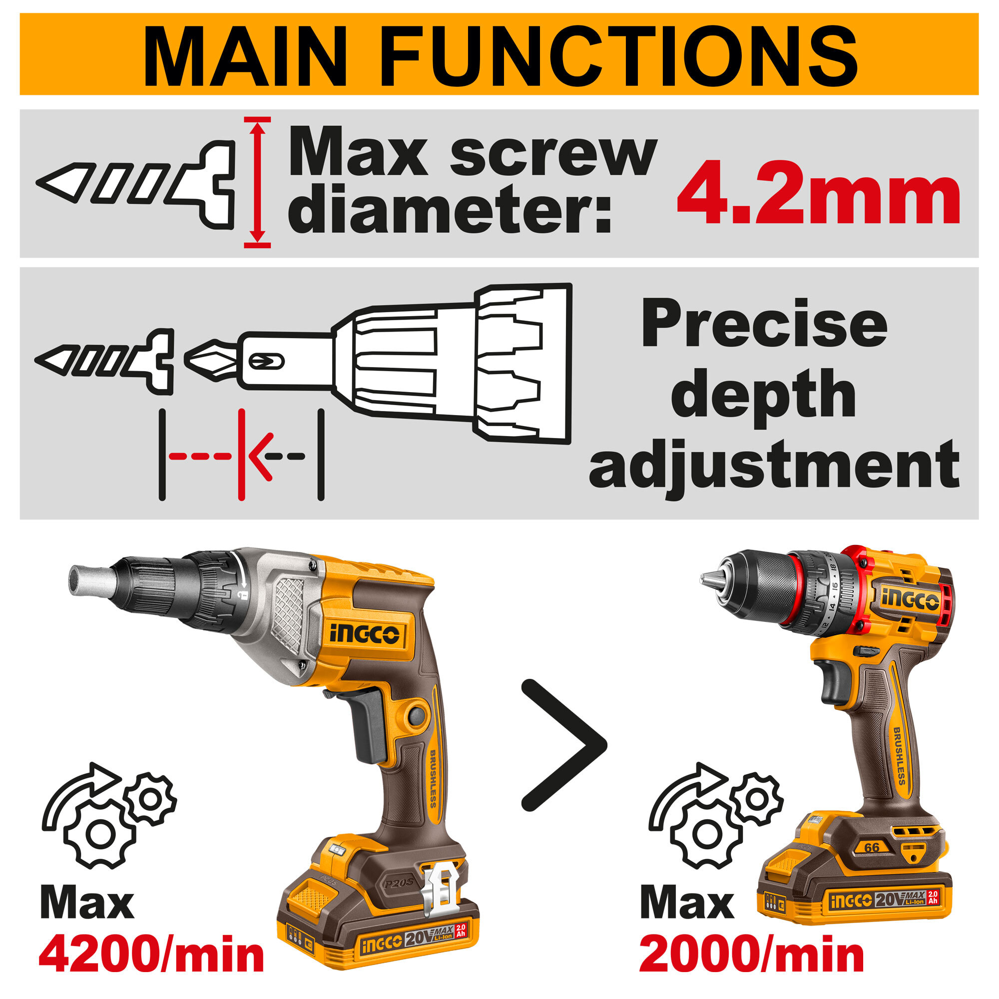 Аккумуляторный шуруповерт для гипсокартона INGCO CDSLI2042006 INDUSTRIAL 20 В 30 Нм предназначен для крепления гипсокартонных и деревянных панелей, наружной облицовки на стену и потолок.