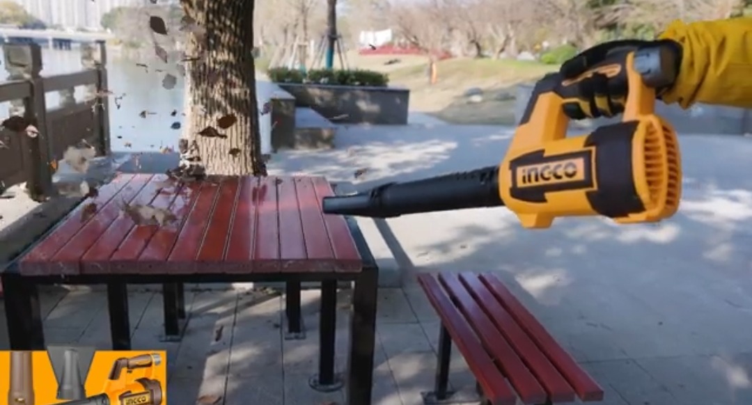 Аккумуляторная воздуходувка INGCO CABLI168082 INDUSTRIAL 16 В 2x2 Ач применяется для уборки территории от листвы и мелкого мусора.
