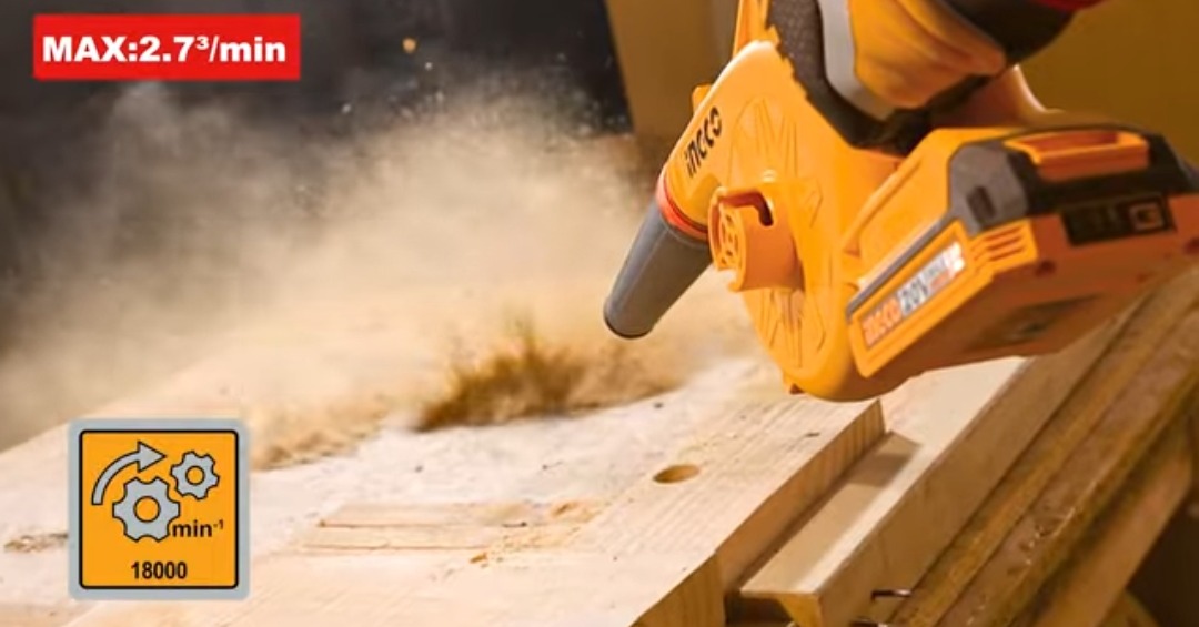 Воздуходувка аккумуляторная INGCO CABLI2078 20 В предназначена для обдува воздухом различных поверхностей.