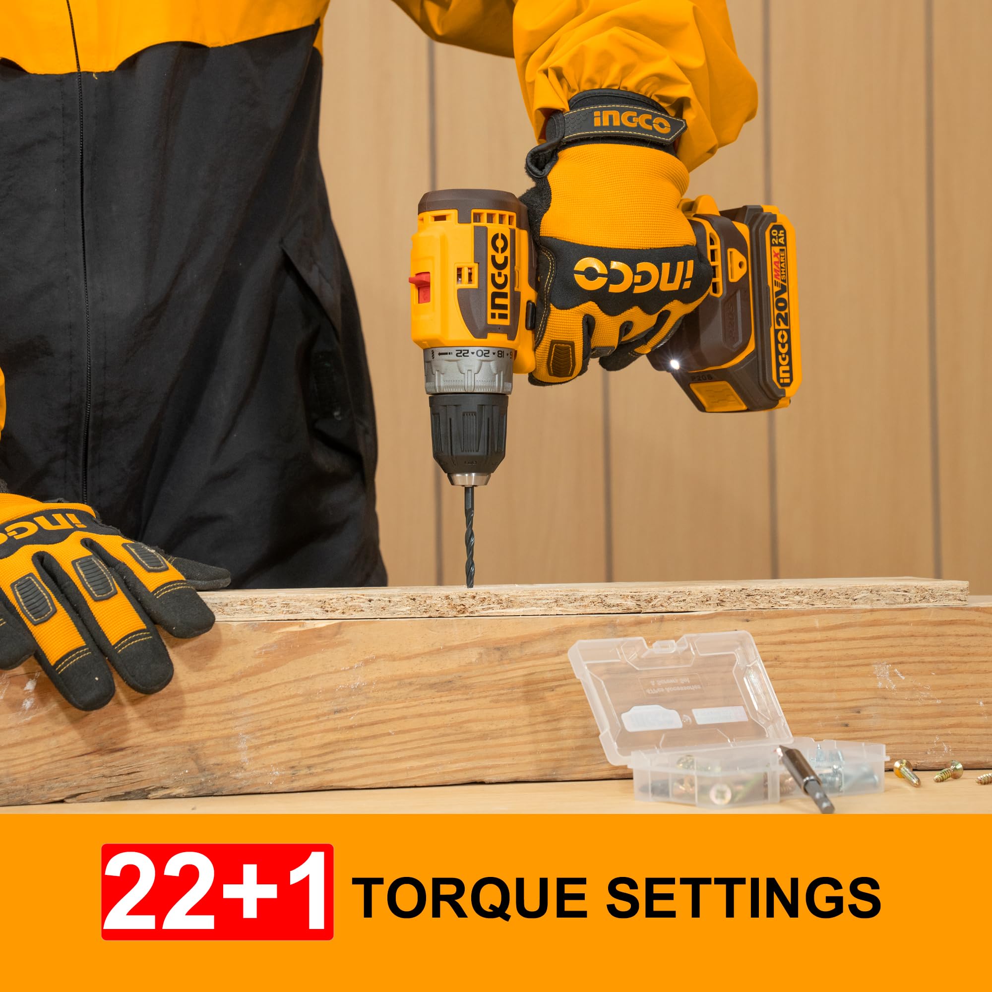 Аккумуляторный бесщеточный шуруповерт INGCO CDLI204531 INDUSTRIAL 20 В 52 Нм 22+1 предназначен для сверления отверстий в пластике, древесине, металле, закручивания саморезов, винтов и прочих крепёжных элементов при сборке мебели, монтаже конструкций, выполнении ремонтных, строительных и отделочных работ как внутри зданий, так и на улице.