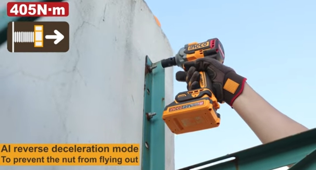 Аккумуляторный бесщеточный ударный гайковерт INGCO CIWLI20451 INDUSTRIAL 20 В 1/2" 405 Нм применяется для закручивания и откручивания болтов или гаек. Ручной гайковерт имеет 3 режима скорости и изменение направления вращения (реверс), квадратный привод 12.7 мм (1/2").