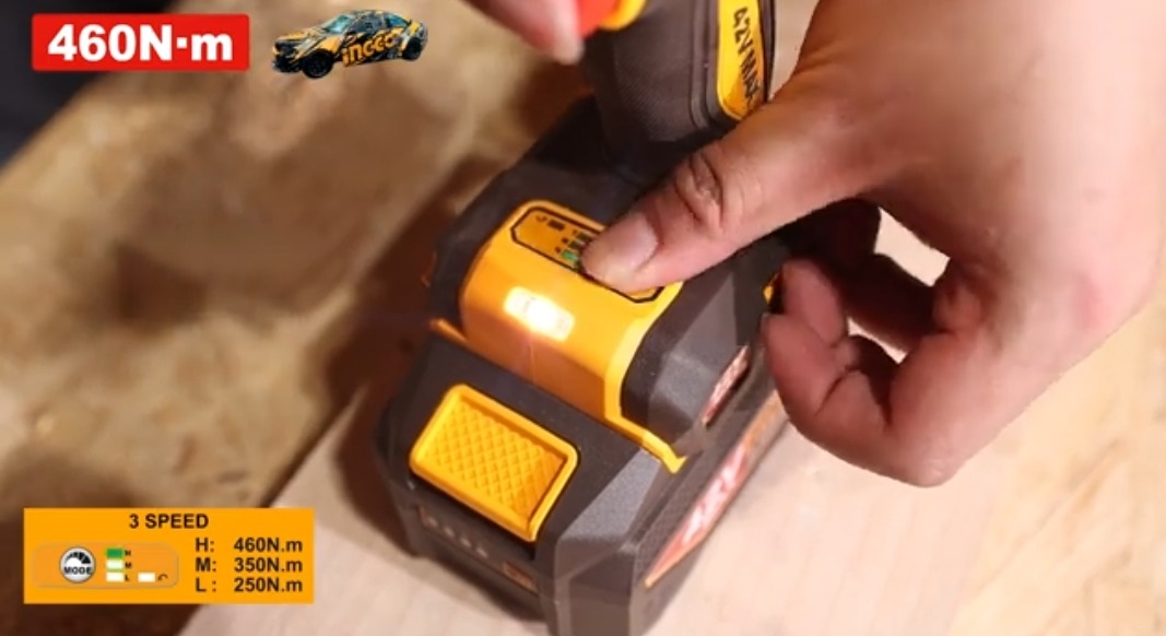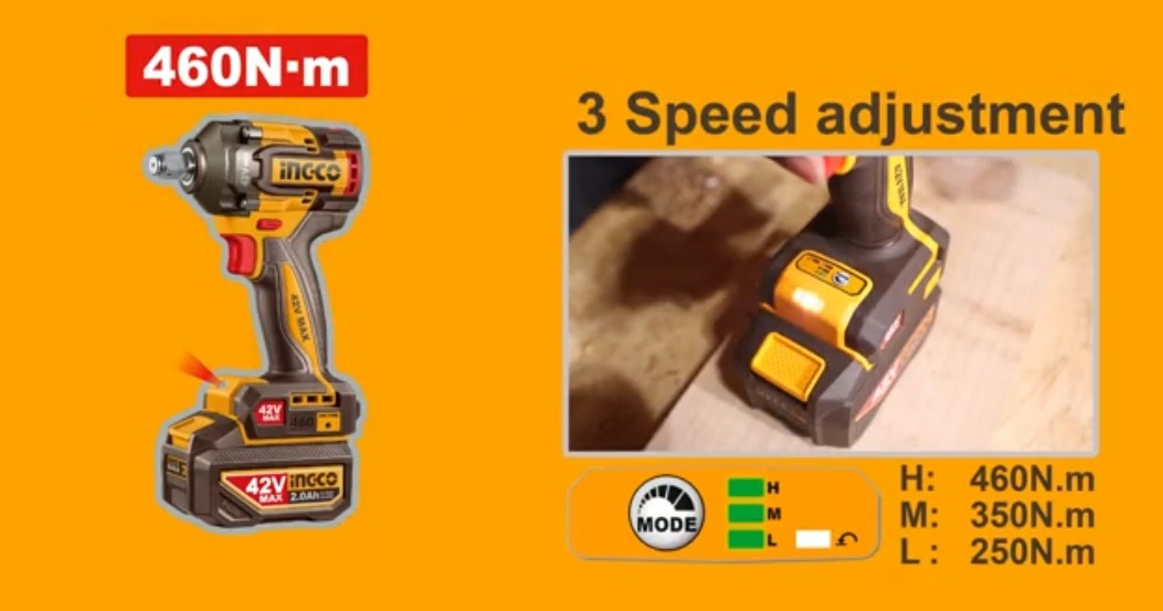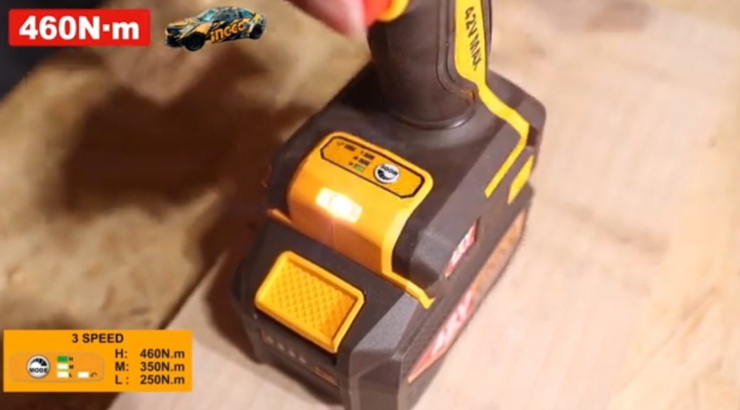 Аккумуляторный бесщёточный ударный гайковёрт INGCO CIWLI42461 INDUSTRIAL 42 В 1/2" 460 Нм применяется для закручивания и откручивания болтов или гаек. Ручной гайковерт имеет 3 режима скорости и изменение направления вращения (реверс), квадратный привод 12.7 мм (1/2").