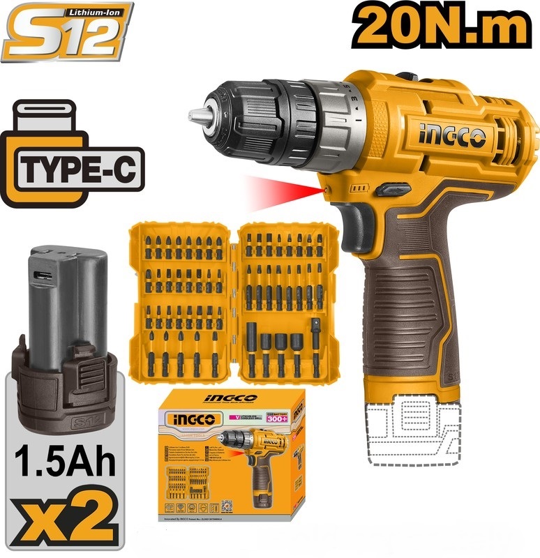 Аккумуляторный шуруповерт INGCO COSLI24011 12 В 20 Нм 15+1 с набором бит предназначен для сверления отверстий в пластике, древесине, металле, закручивания саморезов, винтов при сборке мебели, монтаже конструкций, выполнении несложных и средних ремонтных, строительных и отделочных работ как внутри зданий, так и на улице.