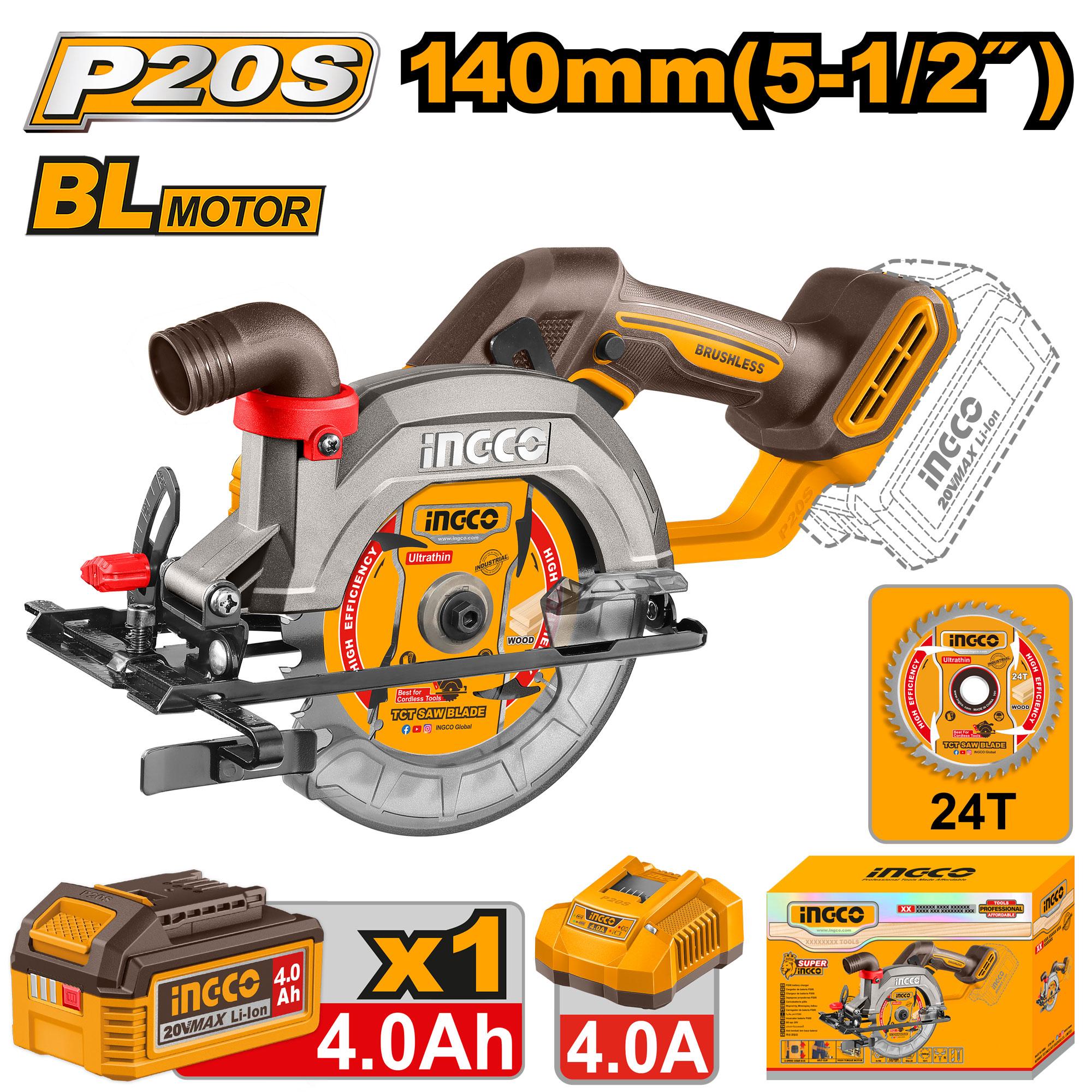 Аккумуляторная циркулярная пила INGCO CSLI14023 INDUSTRIAL 20 В 140 мм 1х4 Ач