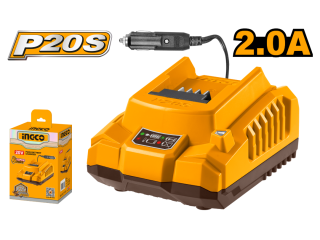 Быстрое интеллектуальное зарядное устройство со штекером для прикуривателя INGCO FCLI2012 INDUSTRIAL применяется для зарядки аккумуляторов INGCO с напряжением 20 В.