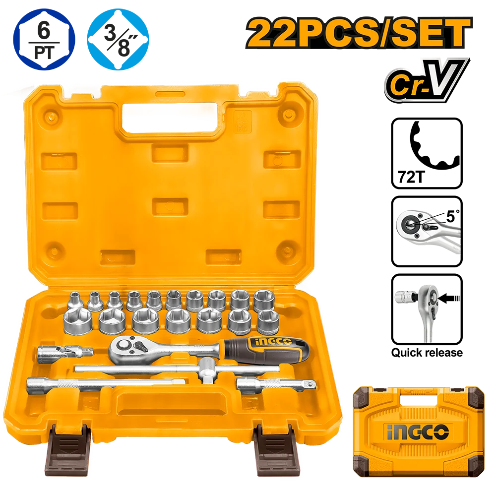 Набор торцевых головок с трещоткой INGCO HKTS38221 INDUSTRIAL 3/8" 6-21 мм 22 шт.