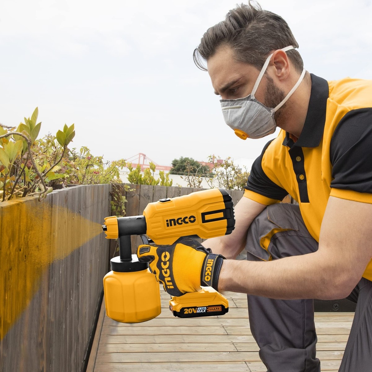 Краскопульт аккумуляторный INGCO CSGLI2003 20 В применяется для быстрого и равномерного нанесения красящих составов на различные поверхности.