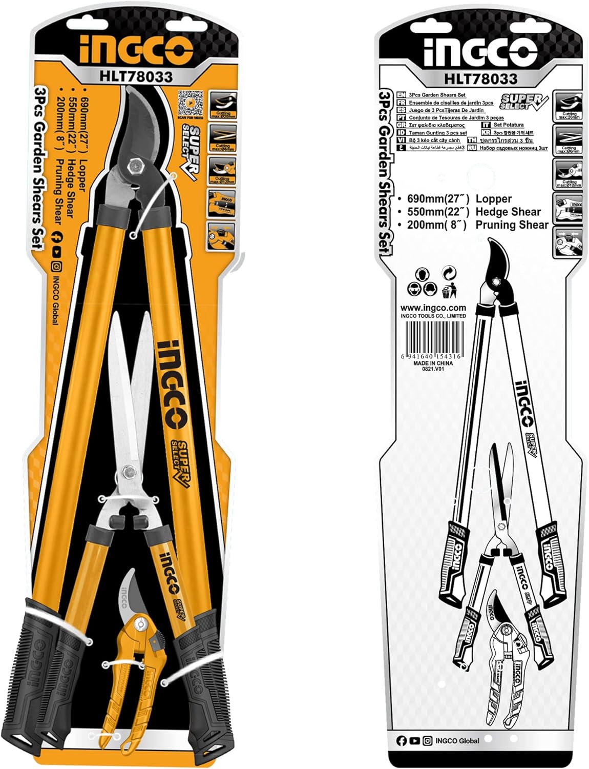 Набор садовых инструментов: сучкорез, кусторез, секатор INGCO HLT78033 3 шт. Универсальный набор для работы с деревьями, кустарниками и живой изгородью на вашем участке. Этот набор удовлетворит ваши разнообразные потребности, сэкономит время и обеспечит эффективную работу. Подходит так же для обрезки цветов, веток, горшечных растений, фруктов. Может использоваться не только для садоводства, но и для других целей. Множество функций на выбор (лезвие очень острое). После использования закройте предохранитель и храните в недоступном для детей месте.