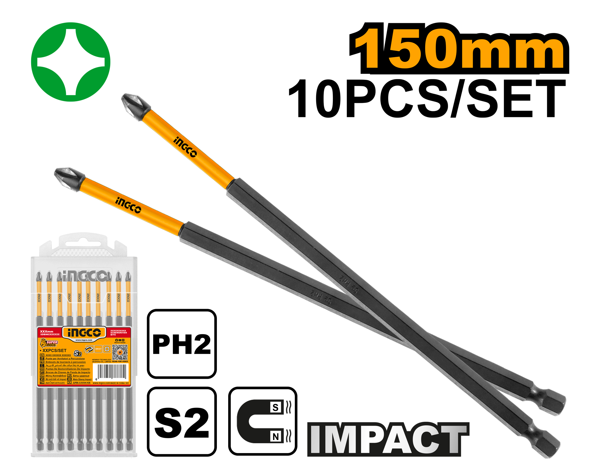 Набор ударных бит для шуруповерта IMPACT INGCO SDBIM11PH263 INDUSTRIAL РН2х150 мм 10 шт.