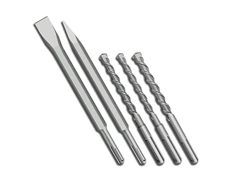 Комплектация: перфоратор - 1 шт., дополнительная рукоятка - 1 шт., ограничитель глубины сверления - 1 шт., бур SDS-plus (6, 8, 10 мм.) - 3 шт., зубило плоское SDS-plus 240x20 мм - 1 шт., зубило пикообразное SDS-plus 240х14 - 1 шт., угольные щетки - 1 пара, дополнительный патрон 2-13 мм.- 1 шт., инструкция, гарантийный талон.