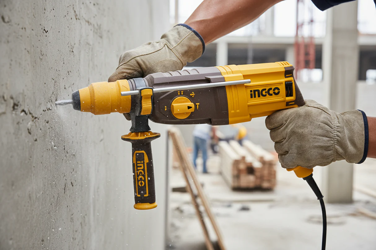 Перфоратор SDS-plus INGCO RGH9528 INDUSTRIAL предназначен для бурения отверстий в бетоне и камне, а также для разрушения кирпичной кладки, пробивания штроб и борозд в бетоне, камне, кирпиче и сверления отверстий в различных конструкционных материалах в производственных и бытовых условиях.