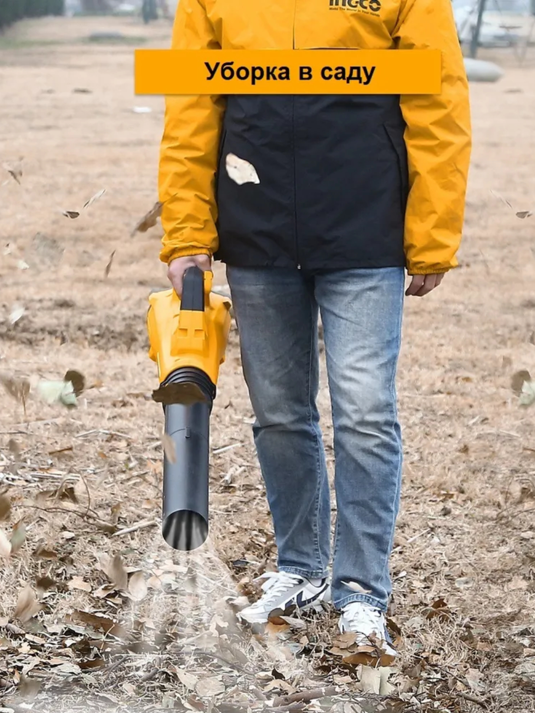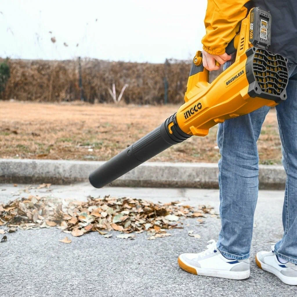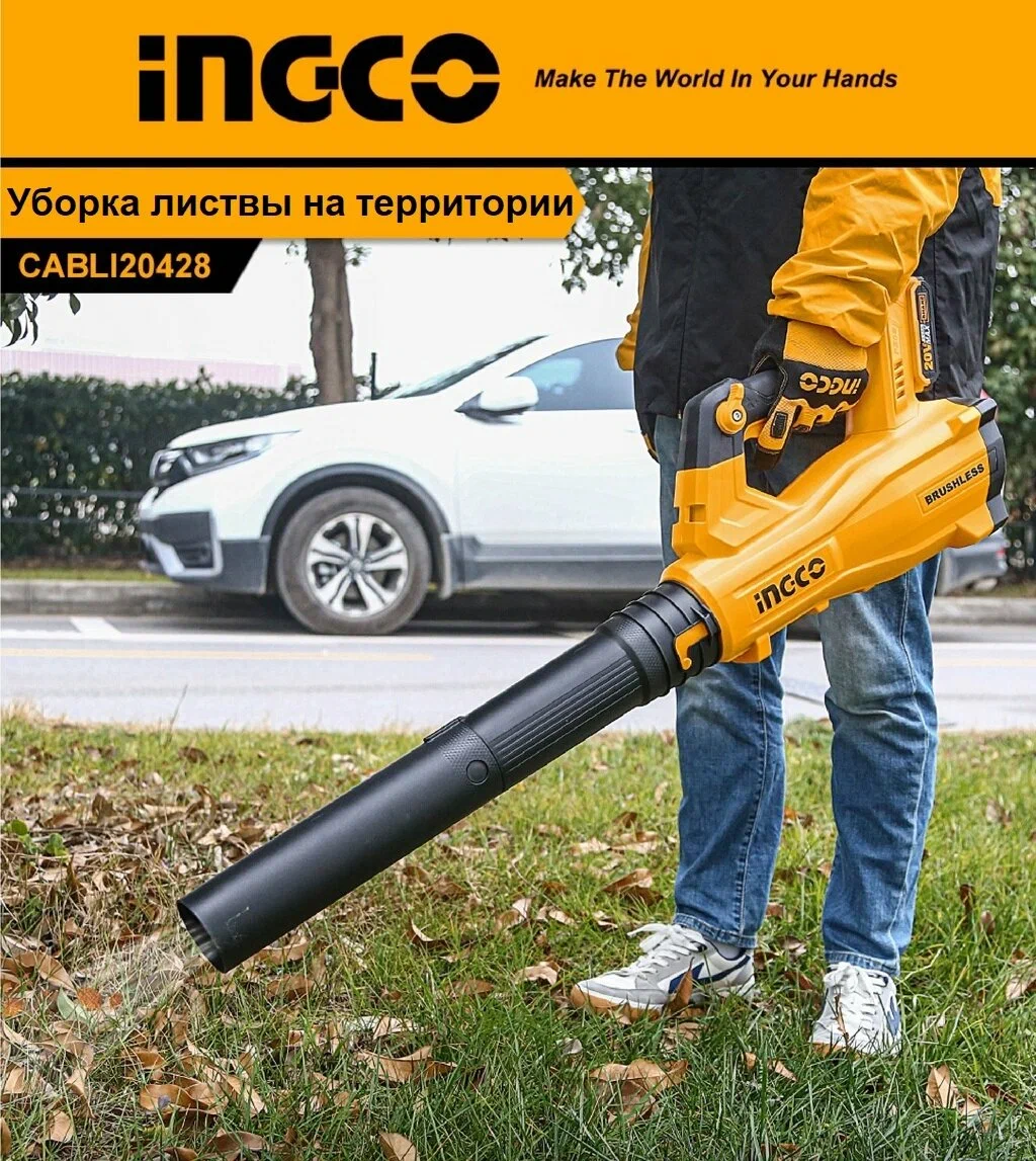 Аккумуляторная воздуходувка INGCO CABLI20428 20 В применяется для уборки территории от листвы и мелкого мусора.