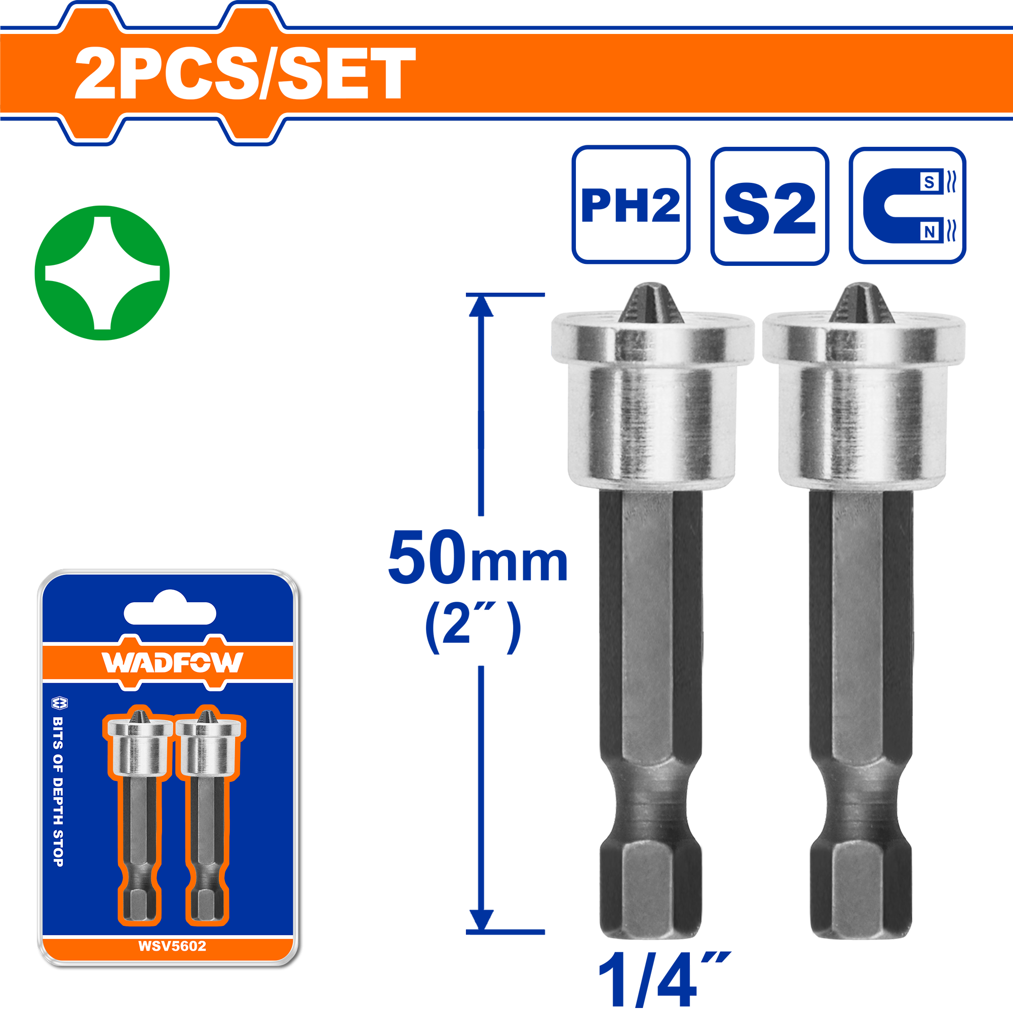Набор бит с ограничителем глубины WADFOW WSV5602 PH2x50 мм 2 шт.